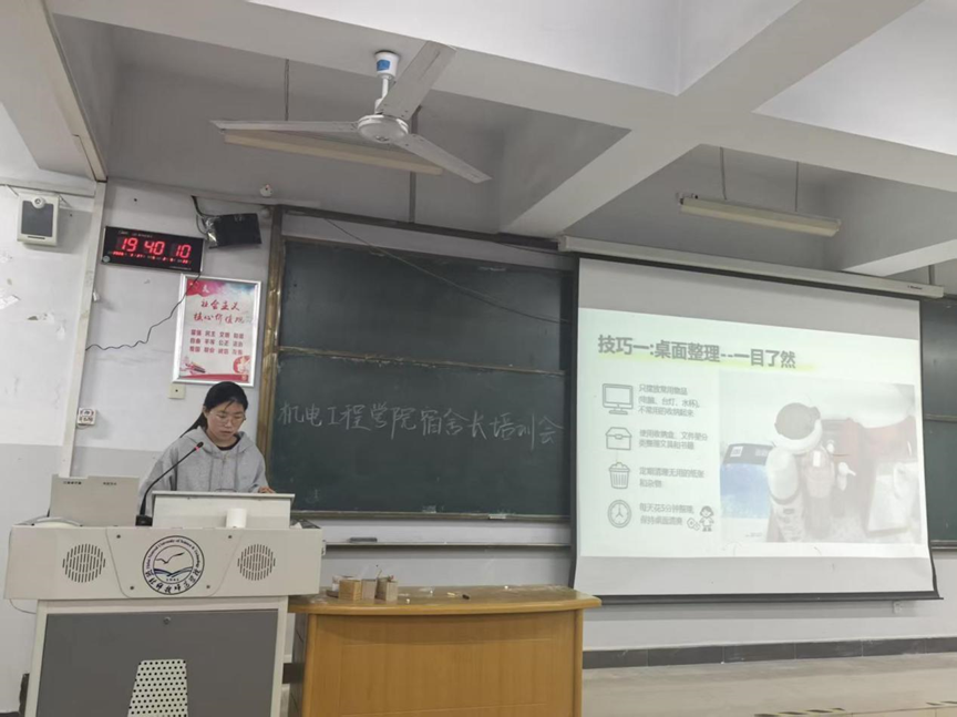 女生优秀宿舍代表孙桐欣(智能制造2401)和男生优秀宿舍代表张梦琦(电气2403)分别从个人储物整理技巧和楼道物品堆积问题入手,倡导大家共同维护好公共环境,号召全体宿舍成员分工协作、各司其职,共同打造干净整洁的生活空间。