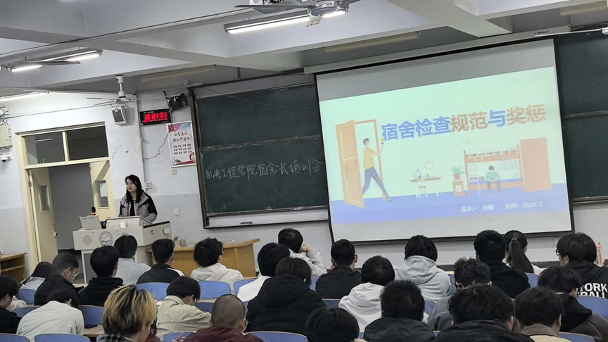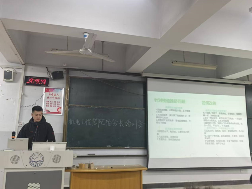 2026年3月27日,为营造整洁有序、温馨舒适的宿舍环境,全面提升学生公寓综合治理水平,ok138cn太阳集团古天乐在开发区校区综合楼312召开了本学期宿舍长专题培训会。开发区校区一、二年级全体宿舍长及公寓部全体成员128人参加了会议。